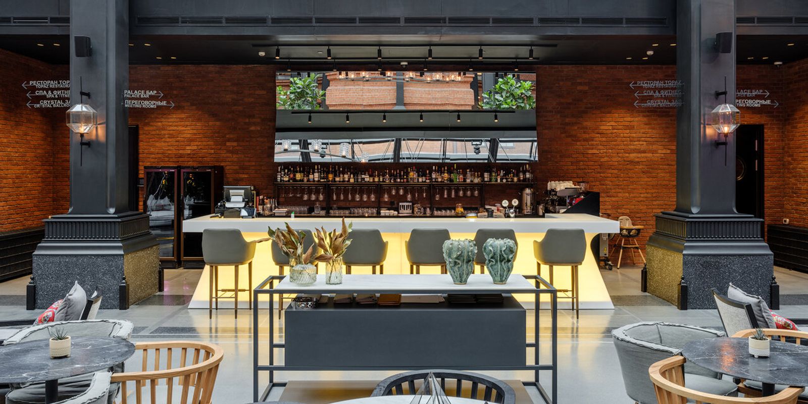 Kazanda Atrium Bar Lounge привлекает разнообразным меню и возможностью комфортно расположиться в лучах солнца за большим круглым столом или столиком на двоих в атриуме. Теплый камин и стеклянная панорамная крыша гармонично дополняют друг друга, создавая уют. Официанты учтут любые пожелания гостей.