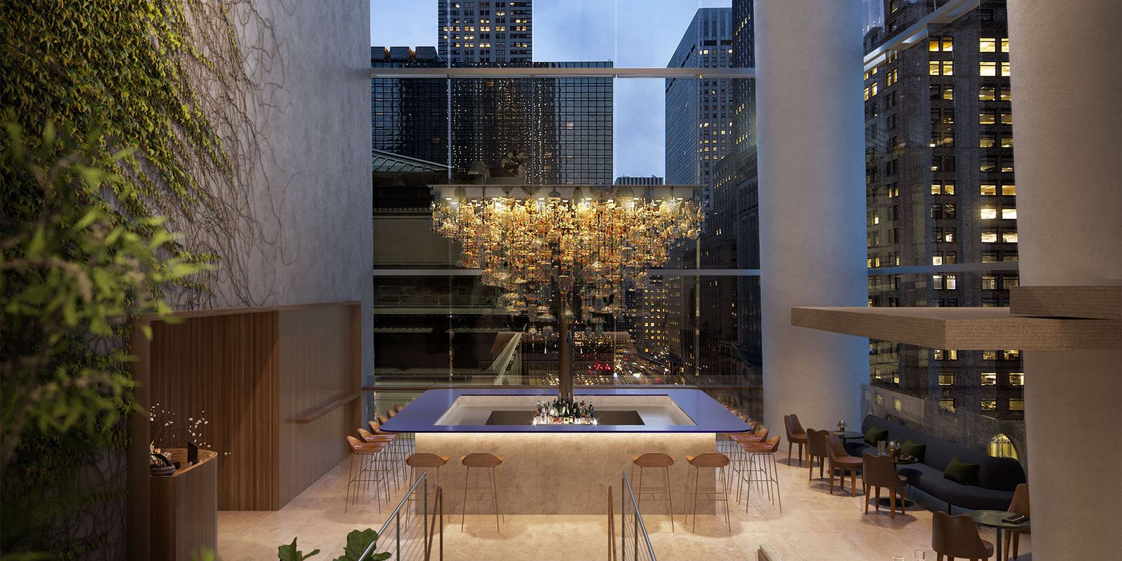 Ресторан Le Pavillon — это заведение в духе традиционного «павильона», места для праздничных встреч в окружении природы в самом центре Манхэттена. Ресторан спроектирован архитектором Вайнфельдом и может похвастаться природным ландшафтом из деревьев, разделяющих стеклянную столовую и высокие потолки.