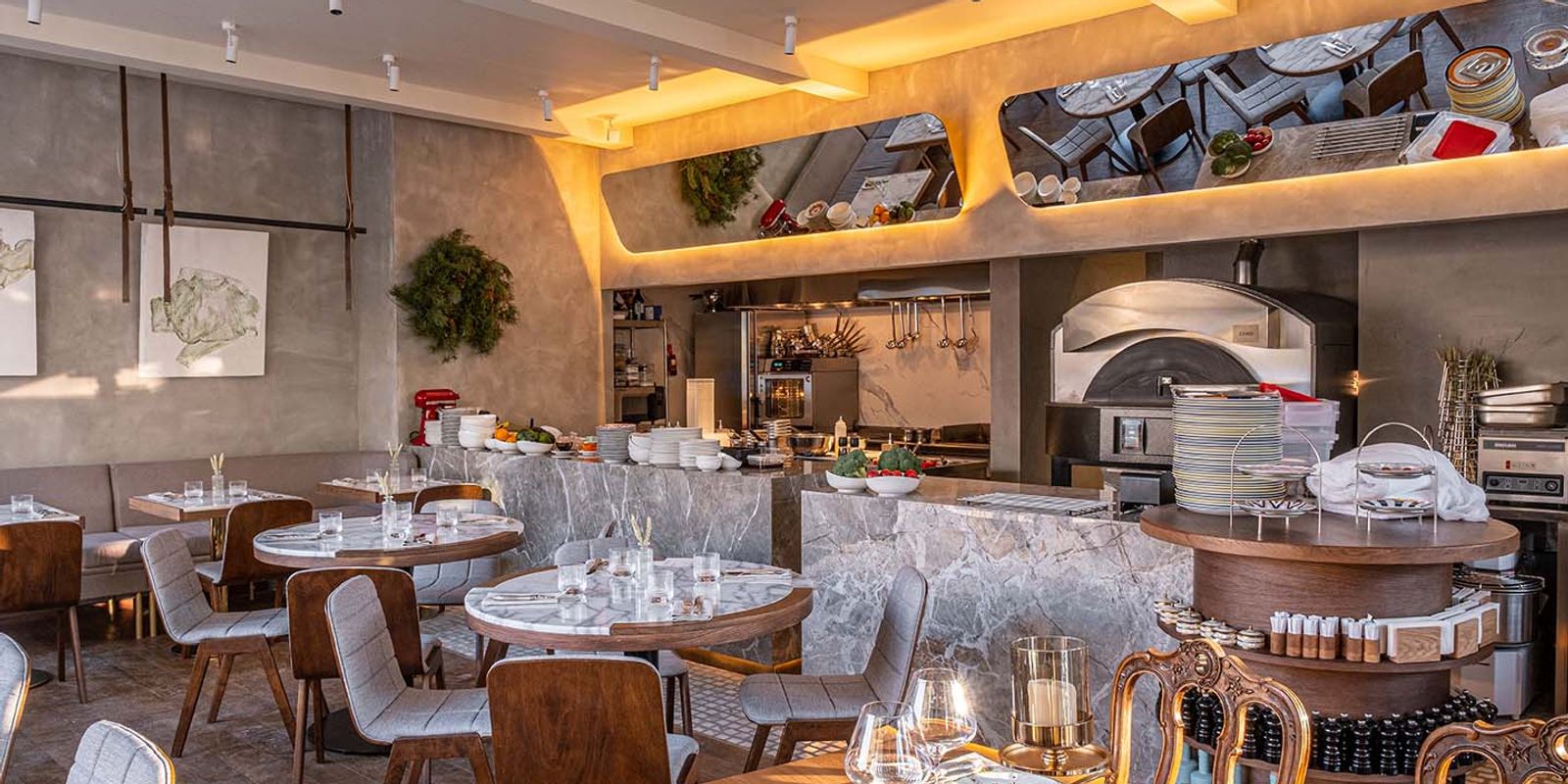 Шеф выбрал для заведения направление comfort food с отсылками к Италии: здесь выпекают неаполитанскую пиццу в профессиональной печи, подают стейки и горячее из рыбы и овощей на гриле. Также в меню: крудо и севиче, горошкомоле, печеные перцы с анчоусами, запеченный лук порей с пекорино и пеканом, гребешки с зеленым горошком, паста и др.