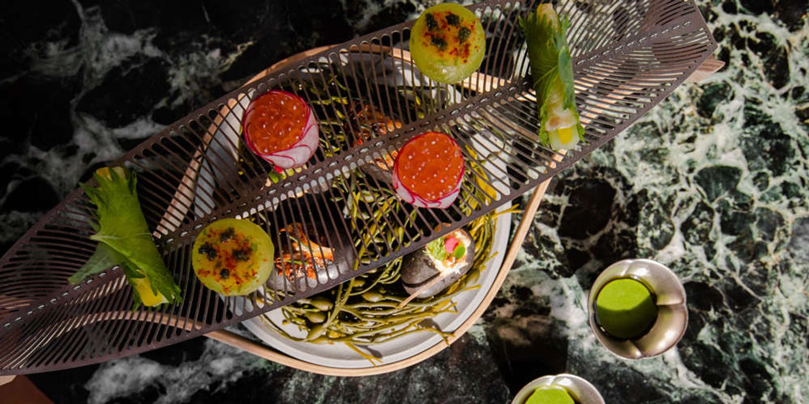 Еда в SAGA основана на европейской технике и представляет из себя экспериментальное дегустационное меню: 245 долларов США на человека, включая налог и приветственный напиток. Посетители смогут увидеть каждый метр заведения, включая кухню, поскольку их проводят из комнаты в комнату для дегустации каждого блюда, приготовленного шеф-поваром Джеймсом Кентом.