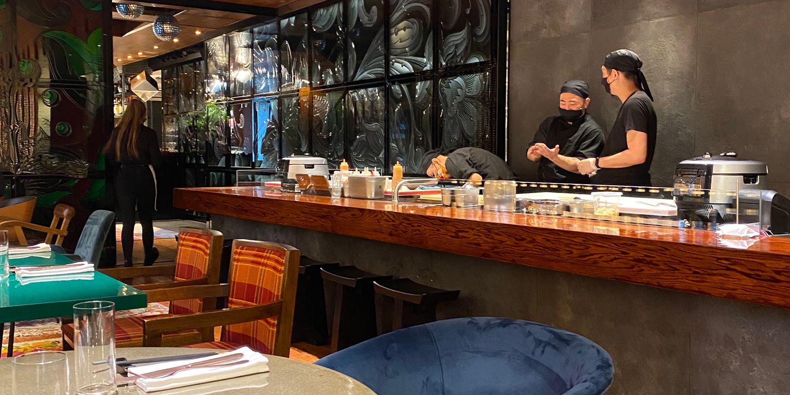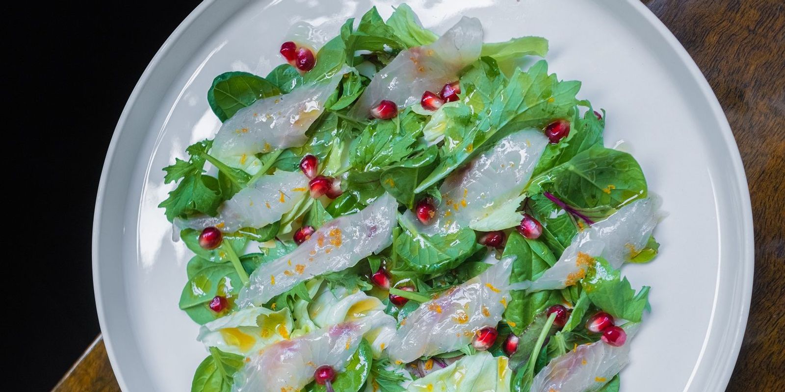 Для меню выбрали азиатский уклон: суши и роллы объединили со спринг-роллами и гедза, уделили внимание блюдам из рыбы и морепродуктов. Здесь можно попробовать осьминога с картофелем и рататуем, сибаса в сметанном соусе, камбалу на гриле, тако с тунцом и пармезаном, карпаччо из лобстера и др.
