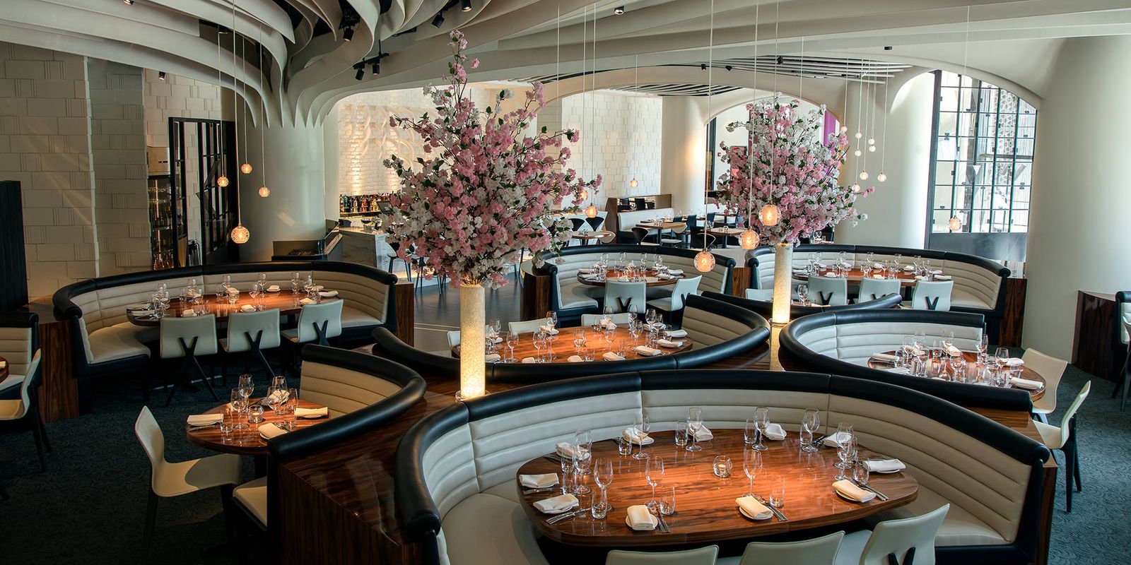 Ресторан занимает первый этаж отеля, а также имеет отдельную открытую террасу с садом, расположенную на крыше. Интерьер заведения стильный: волнообразный потолок, декор в виде цветков вишни и ковровая дорожка в VIP-зоне. Атмосфера изысканного ресторана здесь удачно сочетается с энергетикой стильной вечеринки, что выделяет это место на фоне остальных.