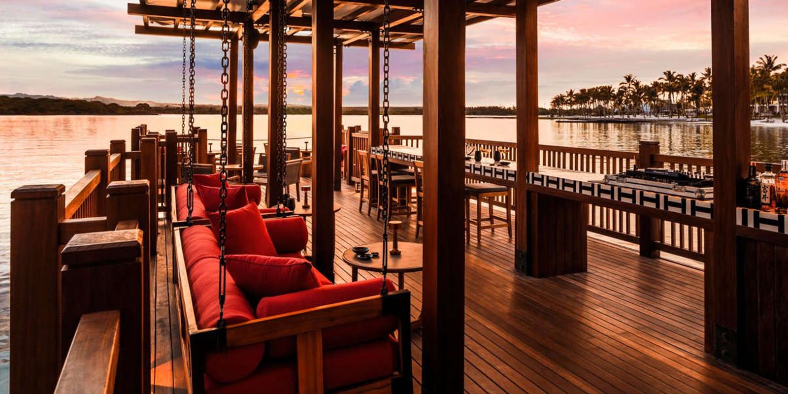 Залы оформлены в самобытно-рустикальном стиле: массивные потолочные балки, светильники из рисовой бумаги в форме гигантских рыбин, выложенная из сушеных пальмовых листьев крыша. Дивные виды на океан и атмосфера праздника — после ужина остается сделать лишь несколько шагов, чтобы танцевать у кромки океана.