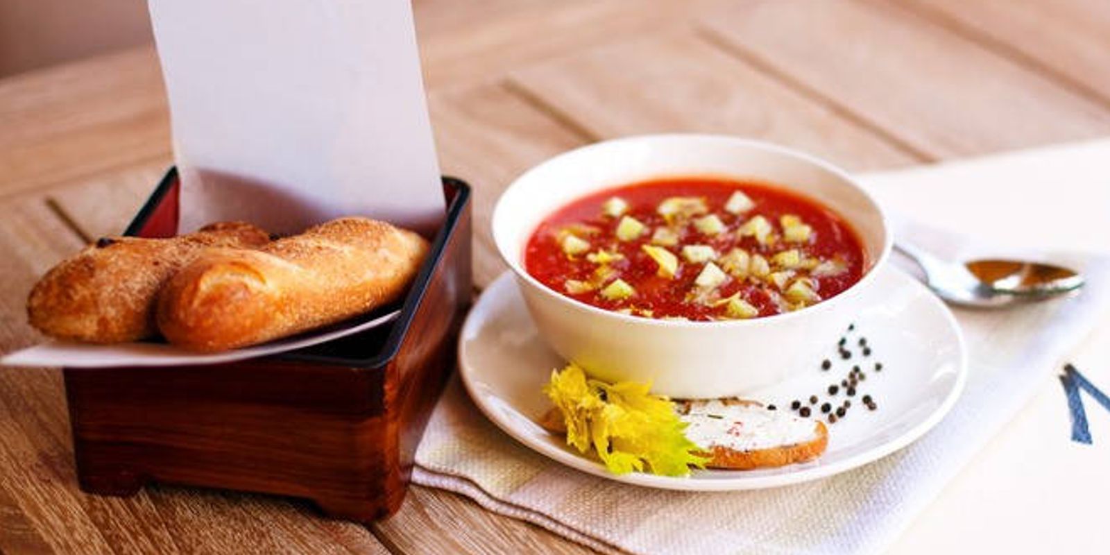 В меню собраны нетривиальные блюда русской, японской и французской кухни, есть раздел пасты и ризотто. На закуску здесь готовят террины из рульки и севиче из лакедры, а на первое предлагают финский сливочный, луковый и тайский супы.
