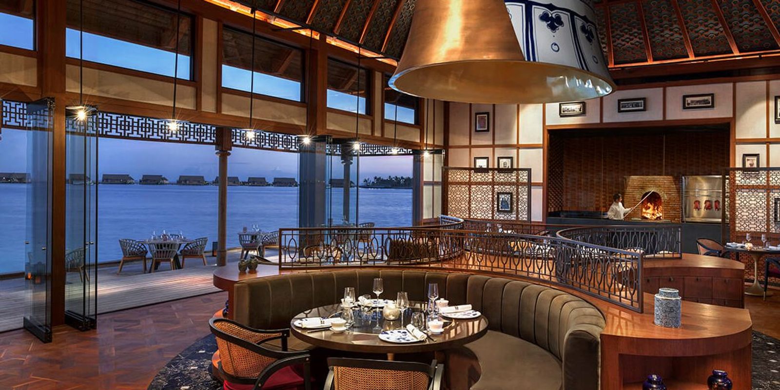 Китайский Li Long над водой звенит колокольчиками, обещая румяную пекинскую утку из дровяной печи, разрезанную на 108 частей, традиционный суп из морепродуктов, мальдивского лобстера в воке и свинину-барбекю по-кантонски в медовой глазури. Из дим-самов выделяются начиненные креветками с белым трюфелем. Разумно остановиться на одном из дегустационных меню, составленных шеф-поваром.