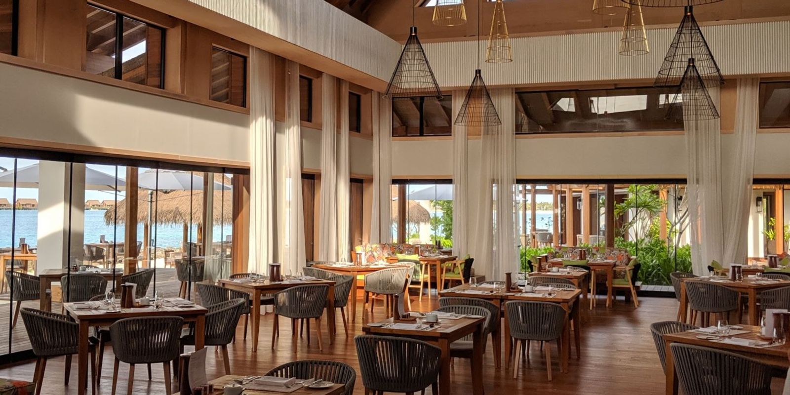 Главный ресторан Tasting Table открыт с раннего утра и до позднего вечера. Столы, расставленные в обеденном зале и на пляжной террасе, никогда не пустуют. Обширное интернациональное меню охватывает вниманием весь кулинарный мир и привлекает гостей разнообразием: тартар из авокадо соседствует здесь с перуанским севиче и набором сашими, грибной суп-пюре — с биском из лобстера, а тальятелле вонголе — с бургером и жареной картошкой.